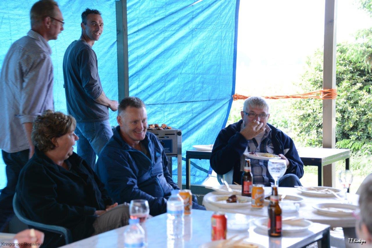 De zaterdagtraining werd afgesloten met een overheerlijke barbecue. Er stond veel wind te zien op de foto met zandverstuiving, maar dit mocht de pret niet drukken.