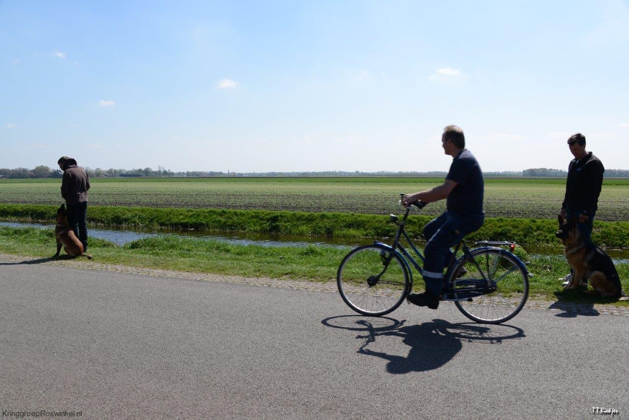 Een mooie route was er uit gezet. Fietspaden met veel schaduw en niet te veel wind. Bij de eerste pauze werden de honden gecontroleerd op hun chip of tatoeagenummer en kon er wat gedronken worden. Bij de tweede stop werden de honden gecontroleerd op de voetzolen en de algehele indruk.